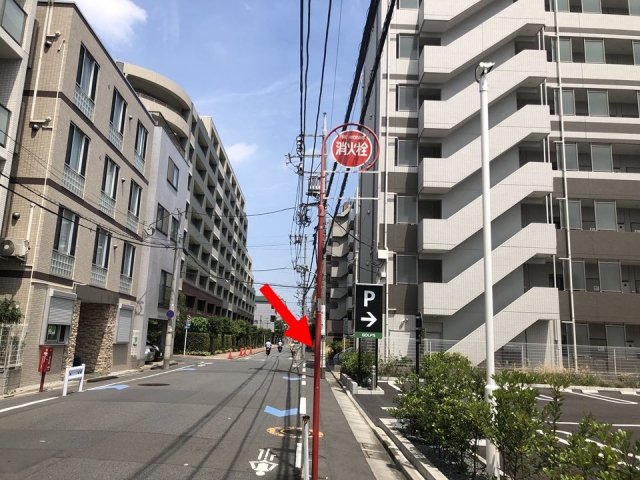 • 前面道路の様子です。矢印の場所が貸出スペースになります