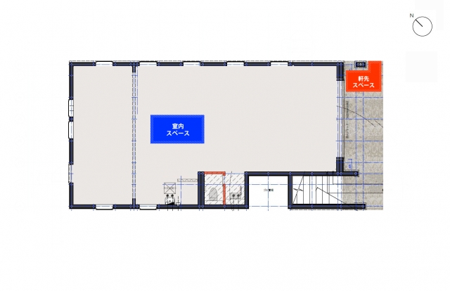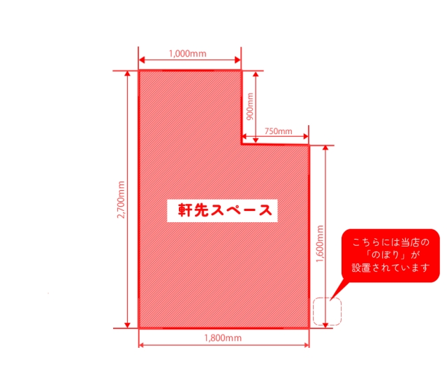 • 軒先レンタルスペースの図面(右上軒先部分が該当スペースになります)