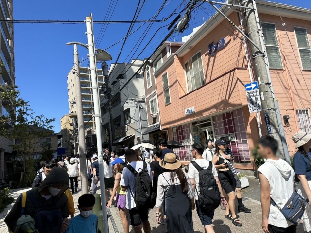 • 店舗前の「すばな通り」、江ノ電「江ノ島」駅へ向かう人の流れ