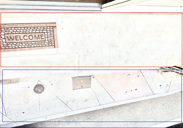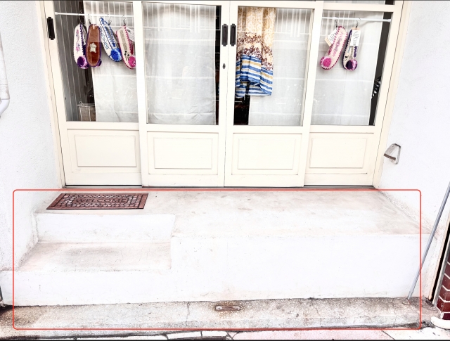 • 軒下は赤い部分ですが、道路までの青部分も使えます