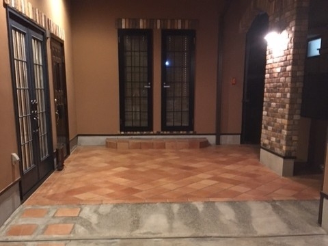 • 屋外スペース:手前が駐車スペース、奥のテラコッタタイル部分が中庭