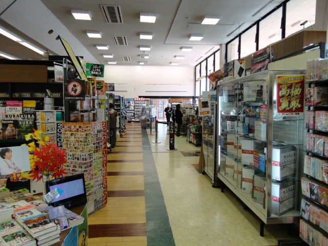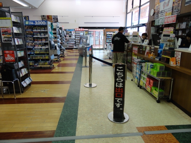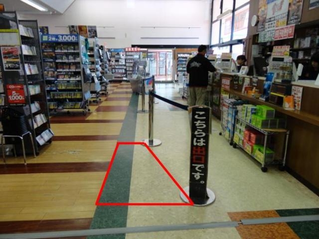 南松本店(TSUTAYA)のレジ前のスペースで、広い通路です。人の目に留まりやすいスペースです。