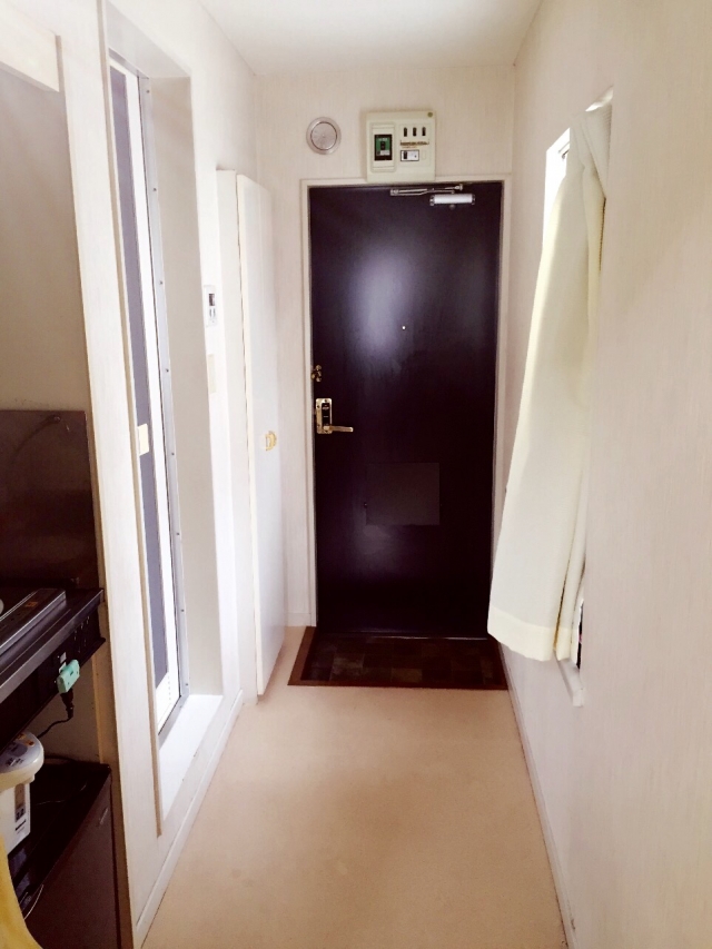 • 玄関と廊下。左にキッチンとお手洗いがあります。右に窓が付いています。