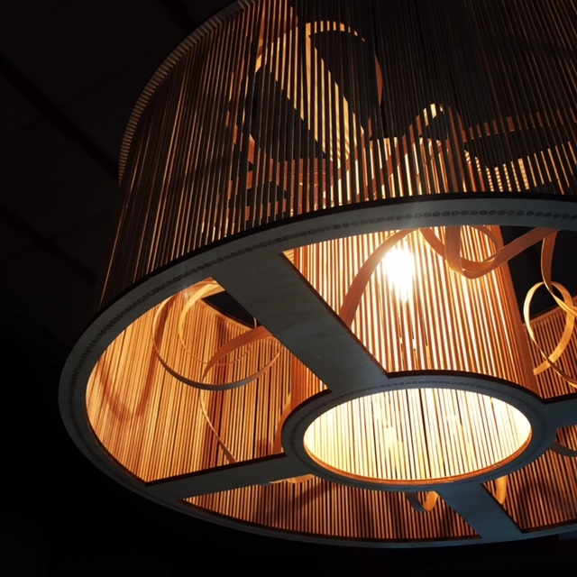 • ハンドメイドで作られた木の照明は各部屋に。