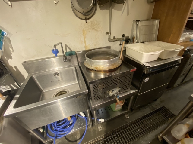 • 左から1槽シンク・麺釜・洗浄機です。