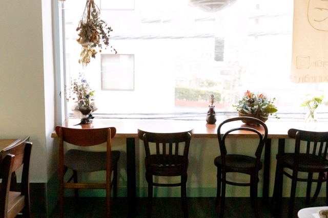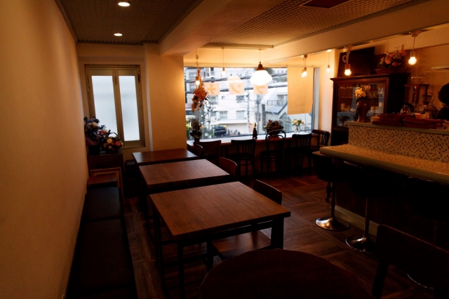 • 窓側カウンター4席、キッチンカウンター4席、テーブル2人×4席