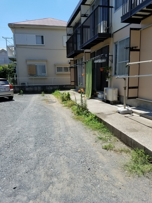 • 駐車スペースからアパートを臨みます